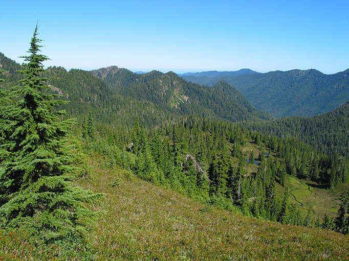 The weather was great; here we're looking northwest towards Deer Lake (which you can't see) and Vancouver Island (which you can!) Hello Canada!