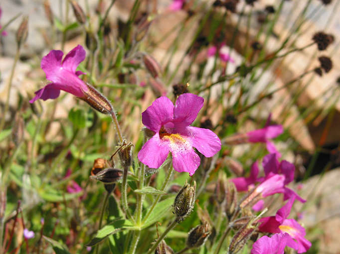 On the trail down to Lunch Lake, we found this huge monkeyflower growing in rocky, dry stream beds. This is Mimulus lewisii, I think.